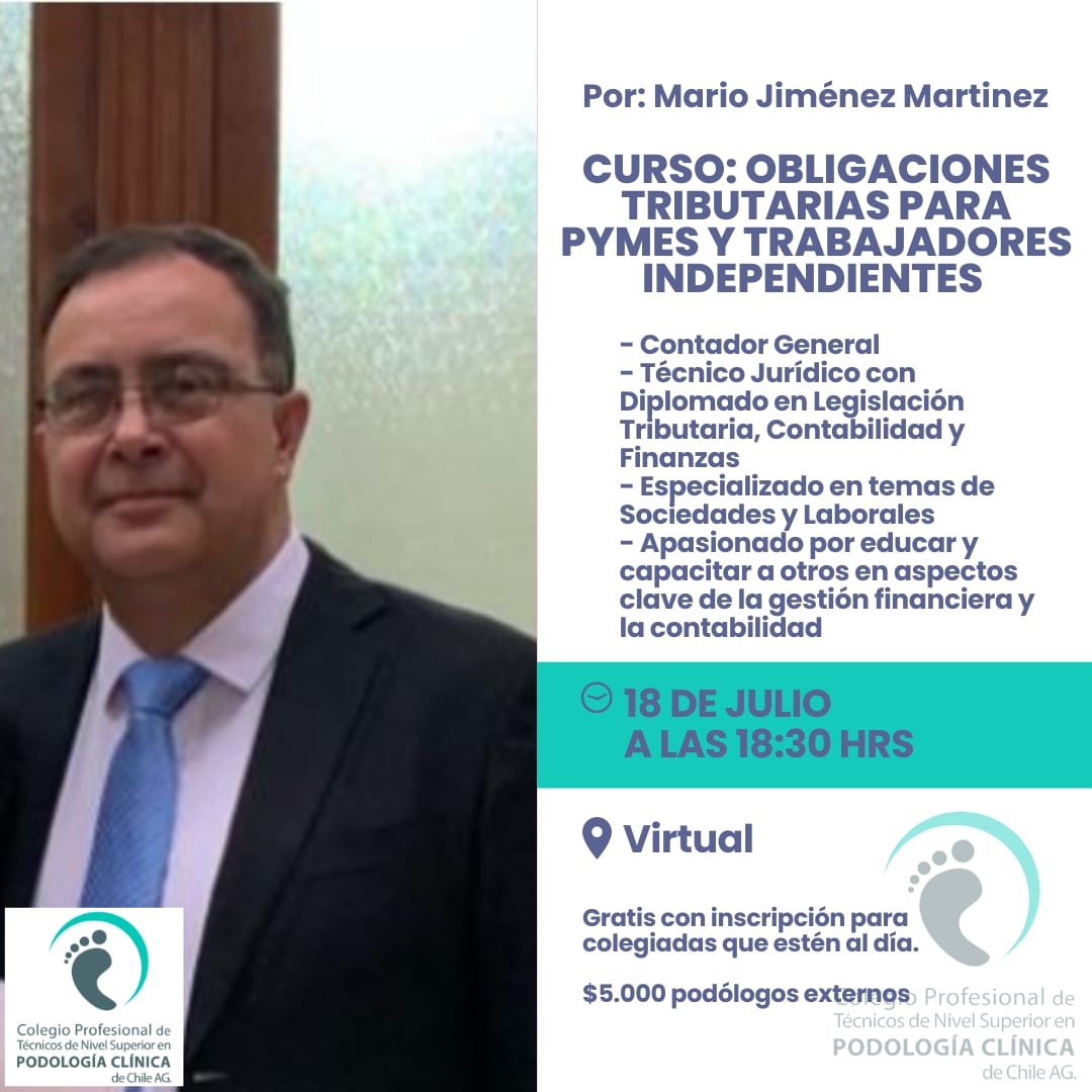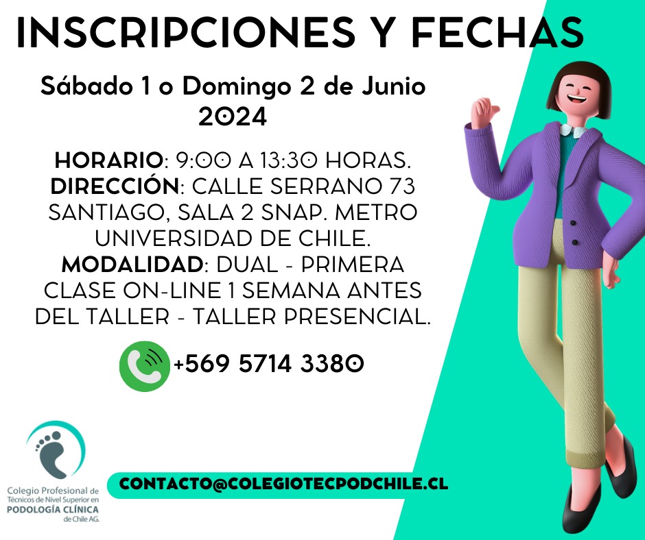 Lugar Definido por Organización Concepción, Concepción, Concepción, ChileTEMA 1: SIMPOSIO PODOLÓGICO MODALIDAD: PRESENCIAL LUGAR: Ciudad de Concepción. FECHA: Sábado 6 de Abril 2024 HORARIO: desde las 8:30 AM. Hasta las 19:00 PM. REQUISITOS: Contar con registro Superintendencia de Salud como podólogos, se estudiante de podología. EXPOSITORES: Gabriela Villalobos López Joyce Salfate Farfán Ana María Castro Rifo Viera Muñóz Escalona. Claudia Ireland Abbott TEMARIOS: […]